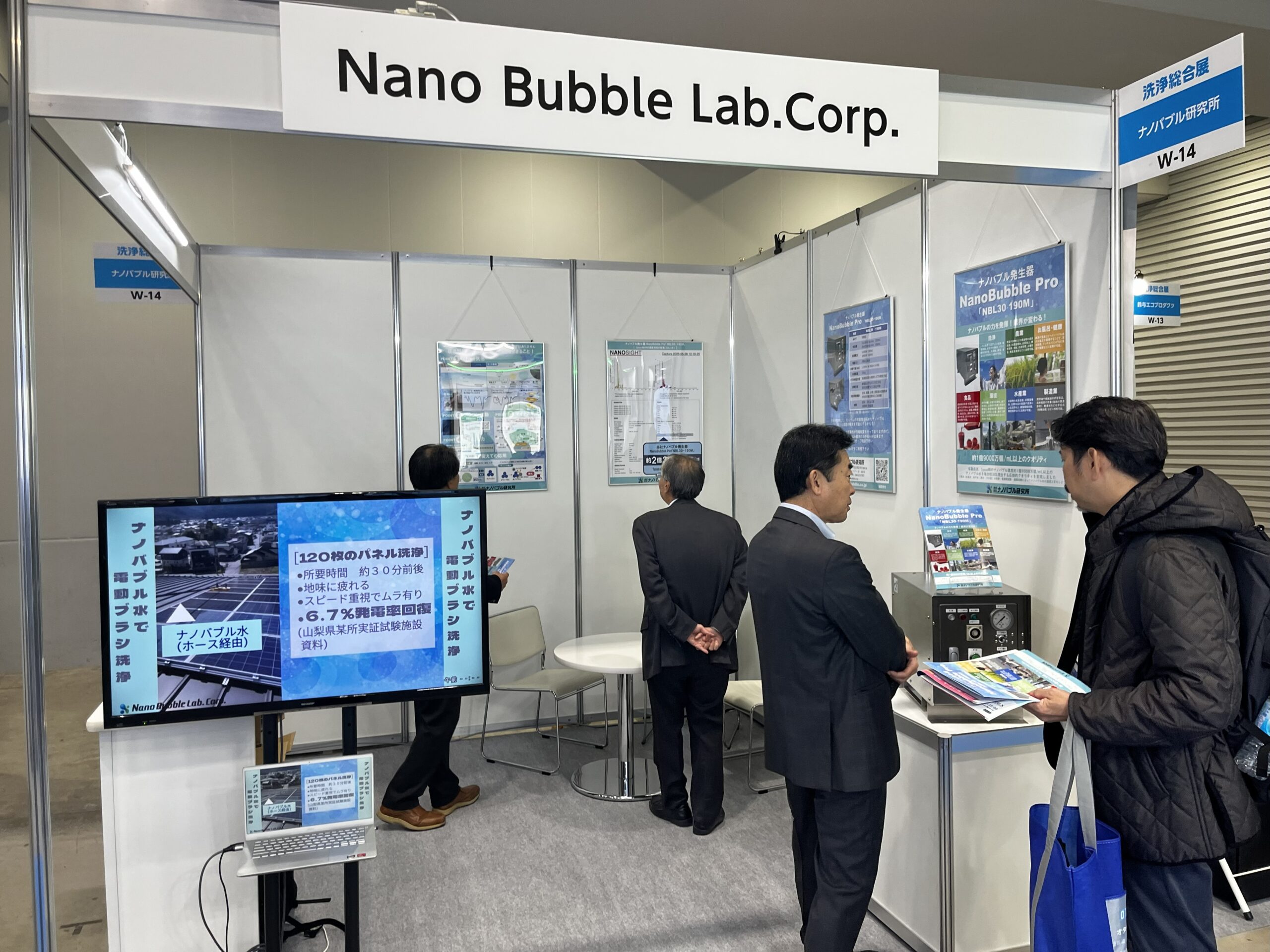 会期中は、洗浄工程で抱えておられる課題や、ナノバブル水を用いた改善の可能性について幅広いご相談が寄せられました。汚れの種類や素材特性、処理時間、設備条件など、現場によって求められる解決策は異なりますが、皆様との対話を通じて、ナノバブルの特性が多様な工程に応用し得ることを改めて確認する機会となりました。