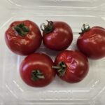 井戸水の畝、ナノバブル水の畝ともに6月初旬から収穫開始。生産者様から6月に収穫したトマトを送っていただき、試食。