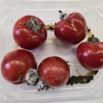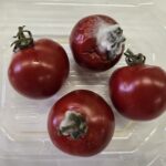 残りをそれぞれ2パターンに分け、当社事務所に6月10日から常温保管し、観察。7月4日(金)までは変化がなし。7月7日(月)に出勤すると、ナノバブル水を使用していないトマトにはカビが発生、ナノバブル水を使用したトマトにはカビが発生せずという変化が表れました。